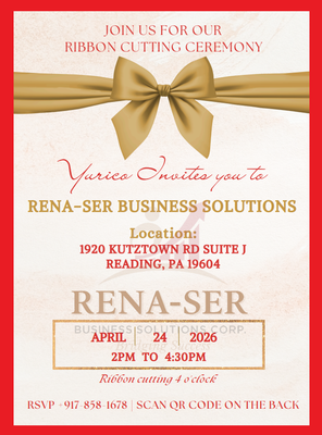 Join the Greater Reading Chamber Alliance in celebrating the ribbon cutting for Rena-SER Business Solutions, a purpose-driven financial solutions firm dedicated to helping individuals and businesses transform their financial potential into lasting outcomes through strategy, education, compliance, and ethical leadership. Come meet the team, learn more about their mission, and help welcome Rena-SER Business Solutions to the community!